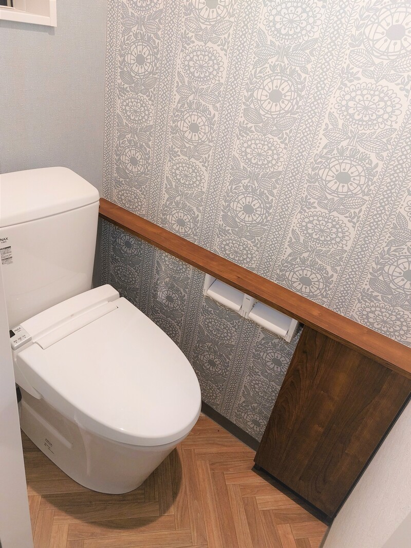 • 【トイレ】2階にもあって安心!こちらはグレーの模様付きの壁紙でかわいらしい雰囲気です。